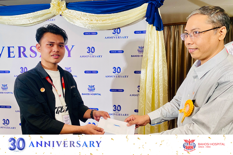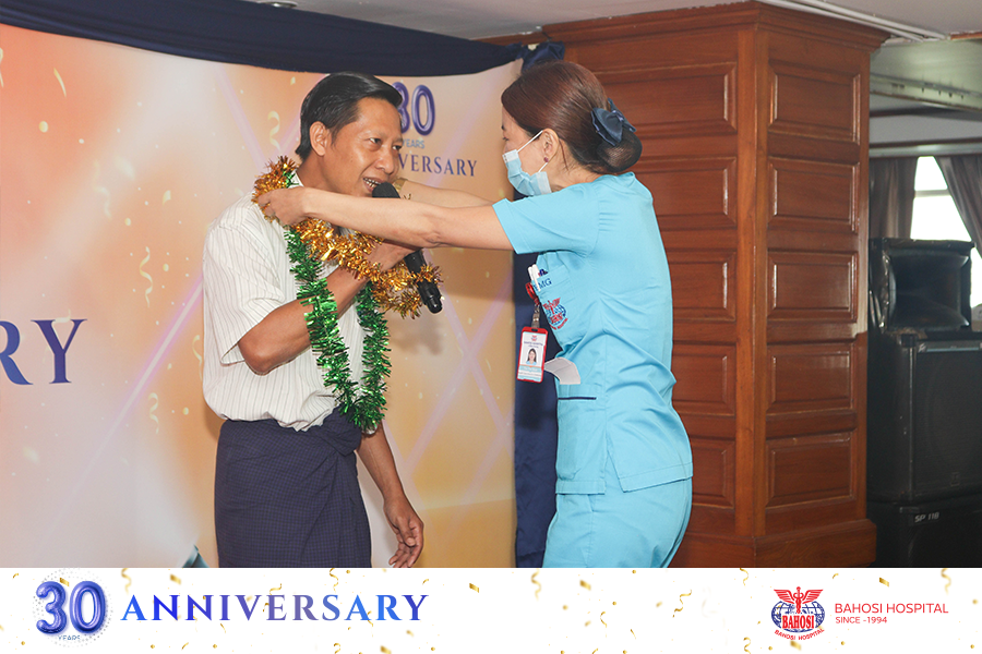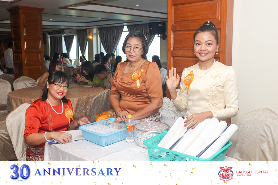 (၂၀၂၄) ခုနှစ် ဒီဇင်ဘာလ (၃၀) ရက်နေ့၌ ကျင်းပပြုလုပ်ခဲ့သော ဗဟိုရ်စည်ဆေးရုံ၏ နှစ်(၃၀)ပြည့် အခမ်း အနားနှင့် ဆေးရုံဝန်ထမ်းများ၏ (၂၀၂၅)ခုနှစ်ကိုကြိုဆိုသော နှစ်သစ်ကူး ပျော်ပွဲရွှင်ပွဲ အခမ်းအနား (Bahosi Hospital 30 Years Anniversary and 2025 Happy New Year Staff Party)  တွင် နှစ်သစ်ကို ကြိုဆိုသောအားဖြင့် နှစ်သစ်ဆုတောင်းခြင်း၊ ဝန်ထမ်းများမှ အမှတ်တရလက်ဆောင်ပန်းချီကား ပြန်လည်ပေးအပ်ခြင်း၊ နှစ်(၃၀) ပြည့်အထိမ်းအမှတ် အမှတ်တရကိတ်ခွဲခြင်း၊ ဖိတ်ကြားထားသော ဧည်သည်တော်များနှင့် ဝန်ထမ်းများအား အစား အသောက်များဖြင့်တည်ခင်းဧည့်ခံခြင်း၊ ဝန်ထမ်းများမှ အက၊ သီဆိုမှုများဖြင့် ဖျော်ဖြေခြင်း၊ ဧည့်သည်တော်များအားဗလာမပါကံစမ်းမဲနှိုက်ပေးခြင်း၊ ထူးချွန်ဝန်ထမ်းများအား ဂုဏ်ပြုချီးမြှင့်ငွေများ၊ ဆုတံဆိပ်များနှင့် မှတ်တမ်းလွှာများပေးအပ်ခြင်း၊ ဝန်ထမ်းအားလုံးတို့အား အမြင့်ဆုံး (1,00၀,၀၀၀)ကျပ် မှစ၍ အနိမ့်ဆုံး(၇၀,၀၀၀) ကျပ်အထိဗလာမပါကံစမ်းမဲနှိုက်ပေးခြင်းများကို ပျော်ရွှင်စွာ ကျင်းပပေးနေသည့် ဝမ်းမြောက်ဖွယ်မြင်ကွင်း များကိုဖော်ပြပေးလိုက်ပါသည်ခင်ဗျာ။