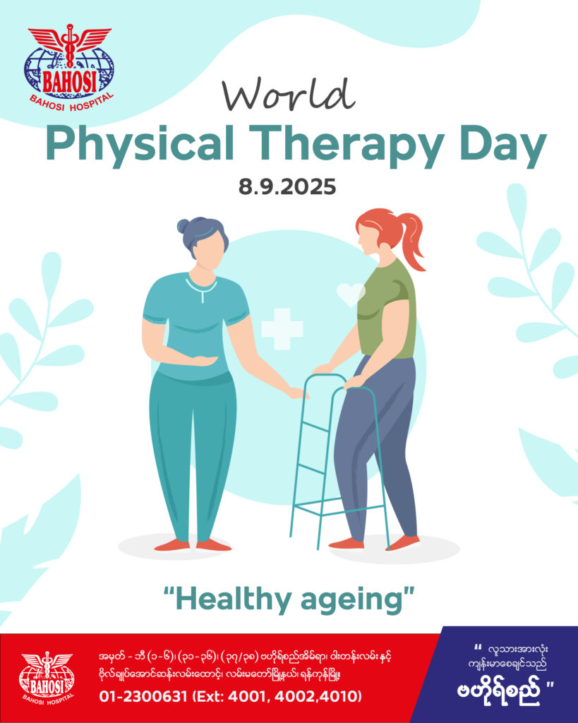 ၂၀၂၃ ခုနှစ် စက်တင်ဘာလ (၈) ရက်နေ့တွင်ကျင်းပပြုလုပ်သော World Physiotherapy Day အား ဗဟိုရ်စည်ဆေးရုံကြီးဝန်ထမ်းများမိသားစုမှ ဝမ်းမြောက်စွာကြိုဆိုဂုဏ်ပြုလိုက်ပါတယ်ခင်ဗျာ။