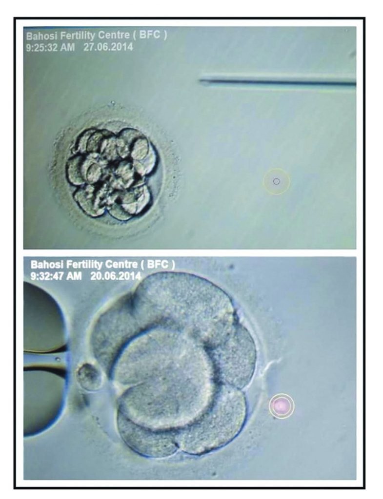 - အရည်အသွေးအကောင်းဆုံးသော သန္ဓေသားလောင်းများအား ဝမ်းဗိုက်ပေါ်မှ တီဗွီဓါတ်မှန်ဖြင့် သားအိမ်အတွင်းအမြှေအား ကြည့်ရှု၍သားအိမ်အတွင်းသို့ နေရာတကျထည့်ပေးပါသည်။ ပိုနေသော သန္ဓေသားလောင်းများအား နောက်နောင်တွင် အသုံးပြုရန်အတွက် အေးခဲ၍သိမ်းဆည်းထားပါသည်။